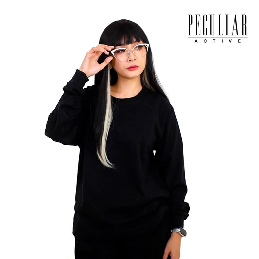Peculiar Black Loose Round Neck Pure Cotton Long-sleeved Sweater 260G for Men And Women