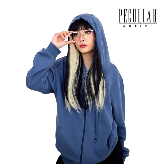 Peculiar Blue Oversize Hoodie Sports Jacket Sweater Pure Cotton 360g for Men or Women